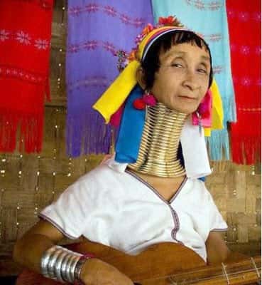 As mulheres girafas, na Polinésia, que espicham os próprios pescoços com aros de ferro deixando-os com mais de 30 cm;animais sagrados;